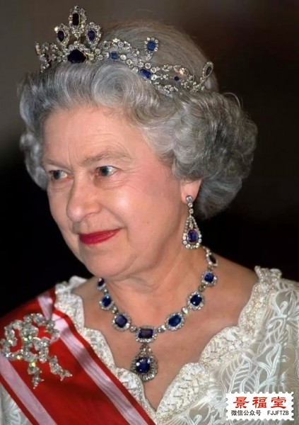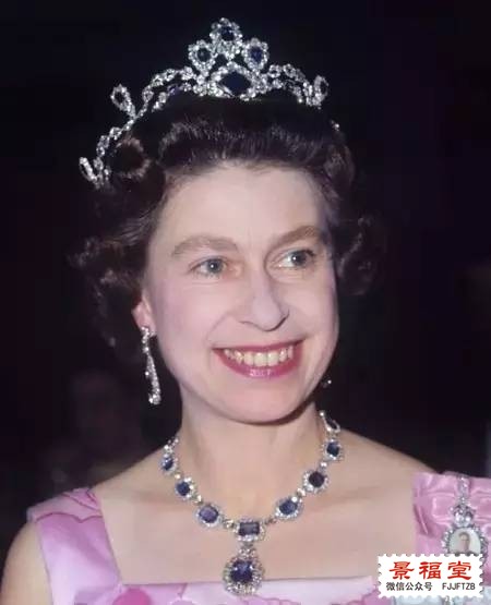 1969年,43岁的女王佩戴这一系列的珠宝,眼睛与宝石的颜色非常和谐。