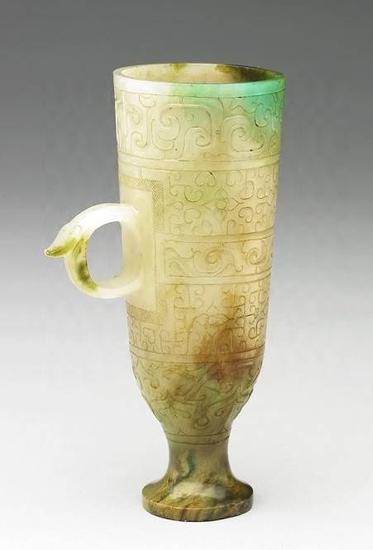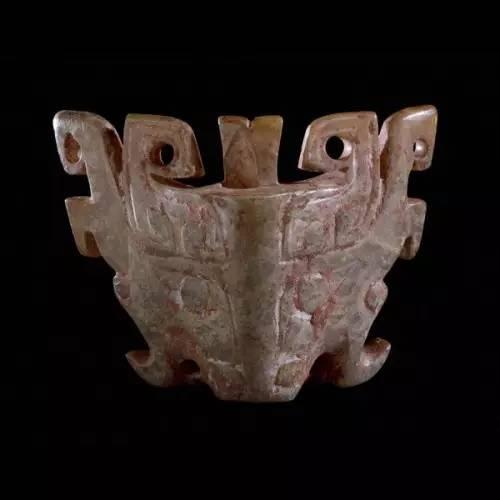 台北故宫藏,战国玉杯,受铜器影响而产生的沁色