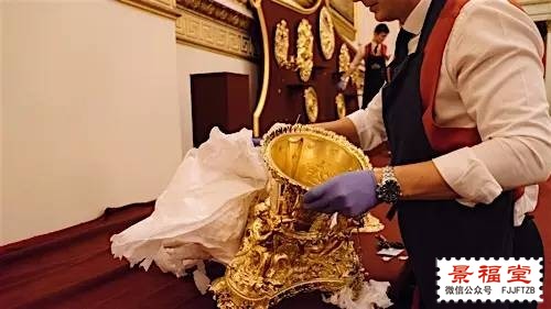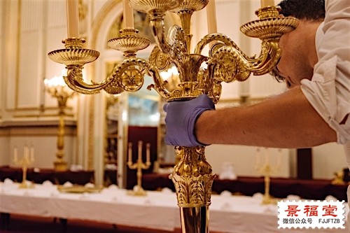 在告别之前,女王的官方Twitter继续曝光了国宴上面的一些「小」细节,除了乔治四世的银烛台,还把压箱子底的大金盘子,大金碟子都搬出来了,眼睛看着晃得生疼,真的是拼: