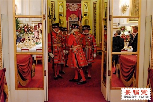 同时还曝光了一张很有意思的照片:宴会开始前,一群卫兵们在窃窃私语,这个时候就有好奇的直男们纷纷发问:这群老头子怎么还穿着红袜子,是不是本命年,是不是CosPlay,内裤是不是红的: