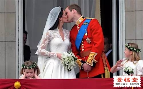 说起这群穿着红色长筒袜的卫兵,比起带熊皮帽子的那群就更带劲,是真正的女王亲卫队,女王参加大型活动都得带上他们,比如威廉王子和凯特王妃在白金汉宫露台上接吻的时候: