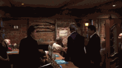 20分钟以后,在挂满猎英式狐猎枪的墙前,两个人干了这杯酒,一起离开了酒吧: