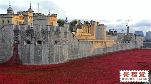 2014年,一战爆发100周年,伦敦城里发起了一个艺术装置,888246朵陶瓷的罂粟花插满了伦敦塔的护城河,为了纪念在战争中死去的士兵: