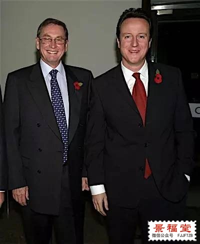 图中这个和卡梅伦一起戴着小红花合影的人,叫做Michael Ashcroft,是一个英国的财主老爷,竞选时给保守党捐过几百万英镑做经费: