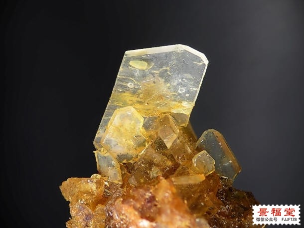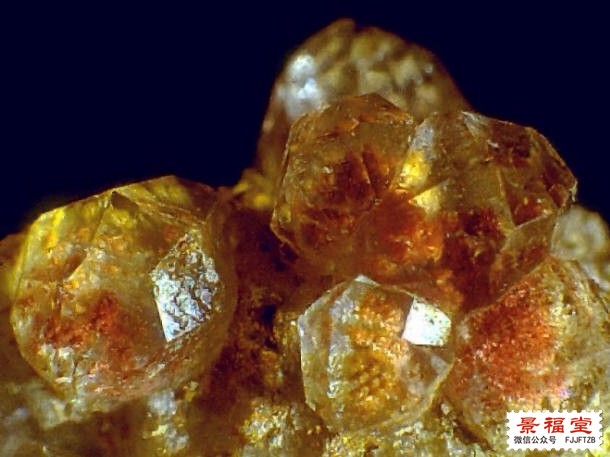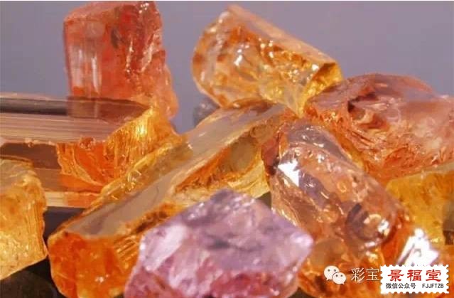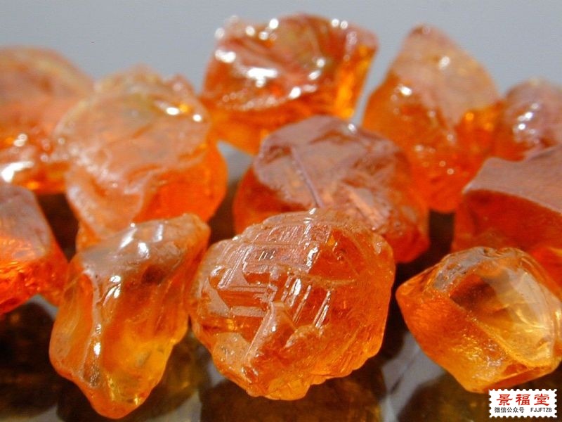 钍石为粒状、块状,可呈黑、褐、黄、橙等颜色,半透明,有玻璃光泽。