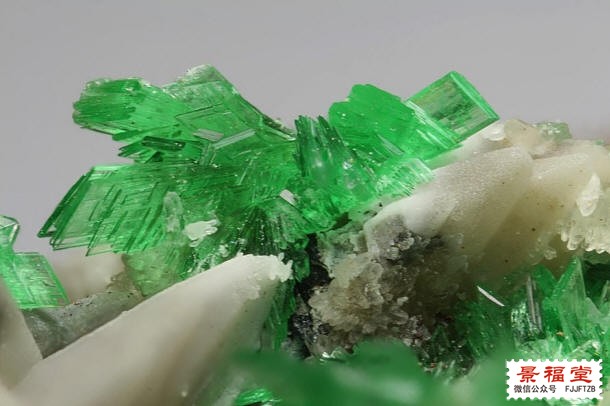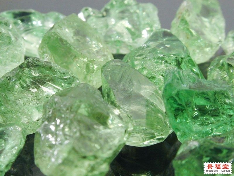 白、灰、淡绿、黄绿色,透明到半透明都有,具有玻璃光泽。