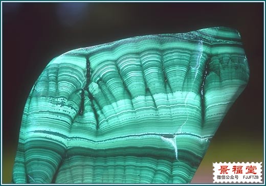 孔雀石是铜的一种次要矿石(像辉铜矿、黄铜矿等为主要铜矿石),具有非常独特的鲜艳色彩,因此人们常常将它用作装饰石料甚至当作宝石。