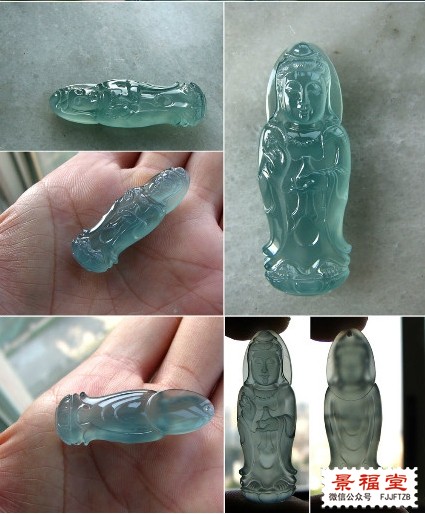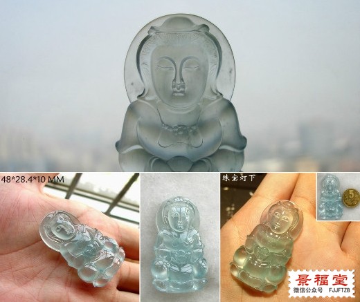 淡蓝色观音,水头很足,透光度很好,如果种份再老一点就好了,难怪种老的东西透明度要差一点了。