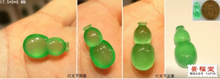 木那的绿水小葫芦戒面,这个色艳,有点状棉,荧光感更强。