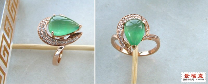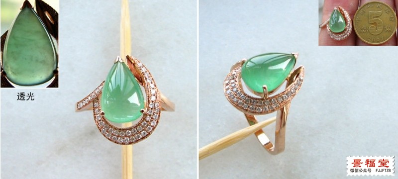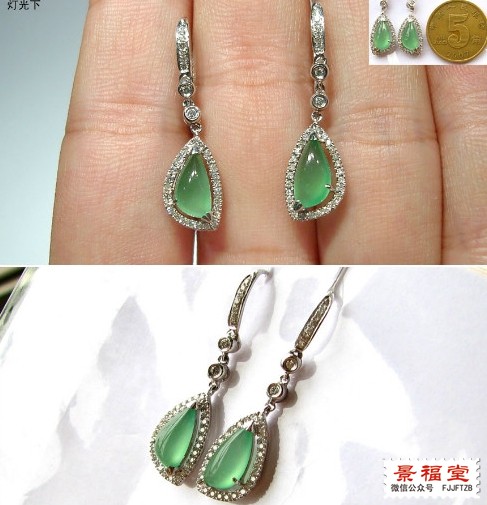 淡绿底色的耳坠和戒指,颜色很淡,很清新的感觉。如果色再深三分,价格估计要翻倍了。