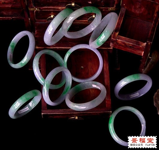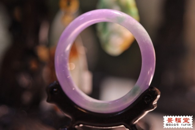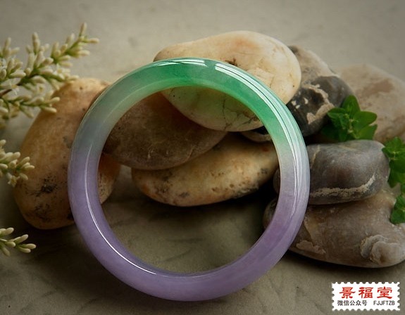 紫色的翡翠手镯称为紫罗兰翡翠手镯,带有绿色的紫罗兰翡翠手镯称为春带彩翡翠手镯。因为有紫和绿两种颜色同时存在于春带彩翡翠手镯上,在翡翠手镯的价格中属于高档翡翠手镯,如果种水较好,且两种颜色都靠近"浓、阳、正、艳、匀",那么价格会更高。