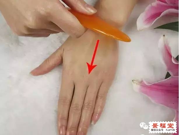 出水泡或出痧为止 两个食指都要刮 ,从指尖向手掌刮,只刮如图的侧面就可以.