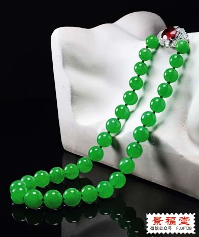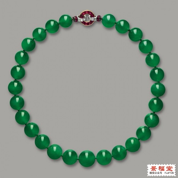 2014年4月7号的苏富比春拍“瑰丽珠宝及翡翠首饰”专场上,一条以惊人的2.14亿港元成交的天然翡翠珠项链刷新了世界翡翠首饰的拍卖纪录。